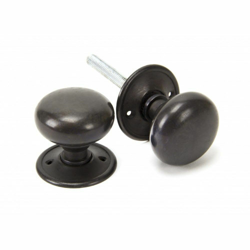 A solid Bronze knob set in very traditional mushroom style. Supplied complete with detachable roses, two lengths of threaded spindle (120mm for use with rim locks & 100mm for use with mortice locks) and therefore can be used in a number of different situations around the home. Use in conjunction with a mortice latch, lock and escutcheon or bathroom thumbturn - For more information see our guide to locks & latches here. A choice of matching escutcheons and thumbturns are also available. Suitable for use internally or externally. Maintenance instructions must be followed to preserve the finish of your product. Finished in Aged Bronze - for more information see the finishes guide here.