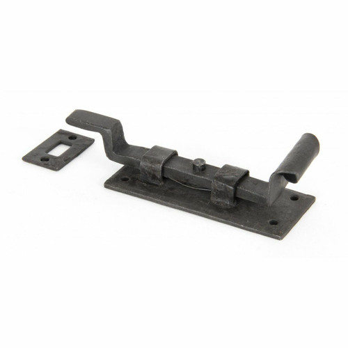 A 'Fishtail' bolt which has been hand crafted to give a fine detail to the curl and forged with a unique spring mechanism to allow use in the vertical or horizontal positions. Designed to be used on outward opening doors (see straight version for inward opening) and also various window types. Supplied with matching receiver plate and fixing screws.