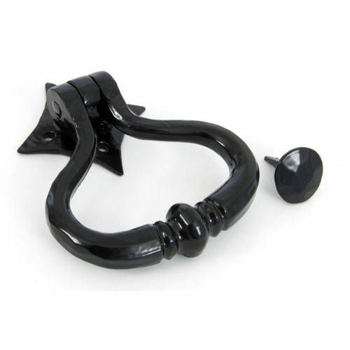 This shakespeare door knocker shows a true masterpiece of forging and has been drawn from one piece of mild steel bar bent to form the ring and shows every hammer blow by our highly skilled blacksmiths. It comes complete with a handmade stud or striker and all the fixing screws. This is suitable for external use