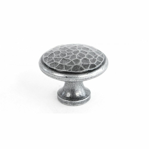 This Pewter beaten cupboard is a triumph of the blacksmiths range. Each indentation is created by an individual hammer blow. No machine could achieve this beautiful effect. They are suitable for cupboards, doors and drawers. Available in two sizes. Supplied with M4 screw.
