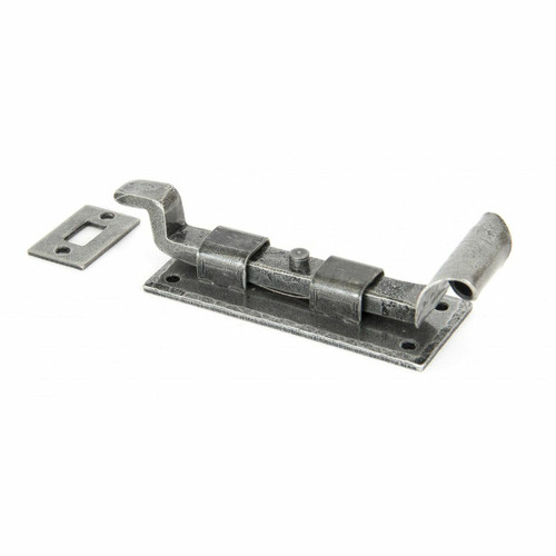 A 'Fishtail' bolt which has been hand crafted to give a fine detail to the curl and forged with a unique spring mechanism to allow use in the vertical or horizontal positions. Designed to be used on outward opening doors (see straight version for inward opening) and also various window types. Supplied with matching receiver plate and fixing screws.