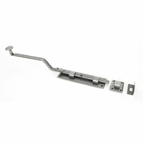 These beautifully crafted bolts have a long cranked handle for ease of use and have a backplate which is 5mm thick. A very strong, unique spring mechanism has been incorporated into the bolt for positive action and allows use in the vertical position. Used on either inward or outward opening doors due to the bolt being supplied with a receiver bridge and angled keep. Supplied with all necessary matching fixings.