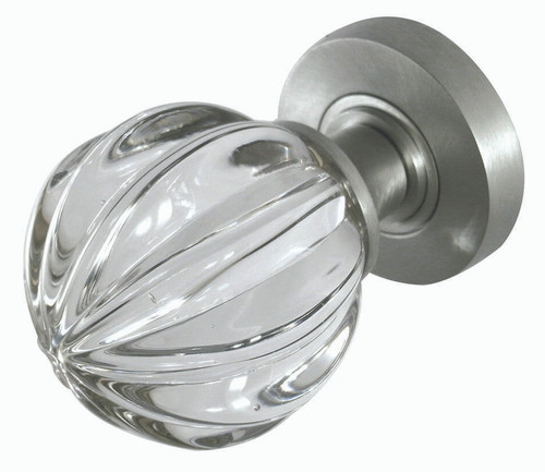 Pumpkin Shaped Glass Mortice Door Knob 60mm on Satin Chrome Rose JH5202SC