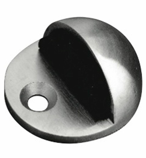 A satin finish stainless steel door stop with black rubber buffer - The finish is top quality and very contemporary.